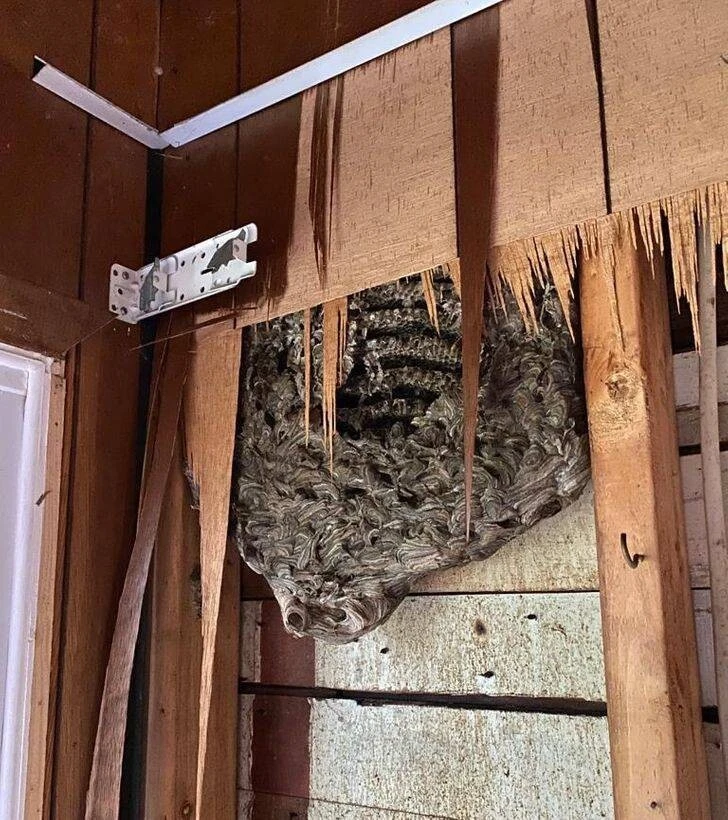 “We are preparing to renovate my cottage and found this wasp’s nest in the bedroom wall. All these years I've lived peacefully in a horror movie"