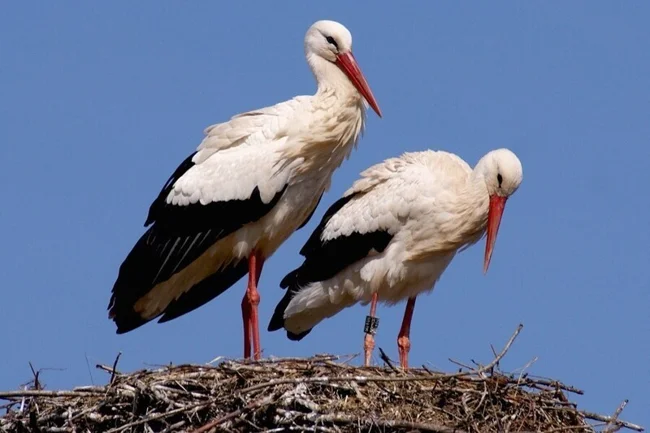 They create alliances for life. The male is constantly with his chosen one, helps her hatch the chicks, feeds her and protects her. However, unlike swans, which try to never separate, these birds fly away separately for the winter. Every spring they meet in the same place, returning to the nest only a couple of days apart. True, there are exceptions. If one of the storks does not arrive for a long time, the second may begin to search for new love.