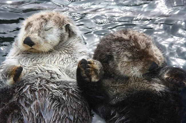 When it's time to eat, sleep, or simply relax, otters do so in the water. And during sleep, partners always hold their paws so that they are not separated by the current.