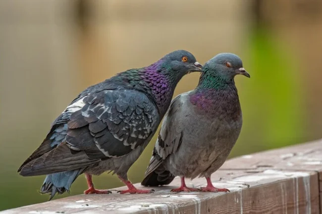 The rock pigeon can form strong pairs for several seasons or for life. This bird uses the same nest every year. If the couple does not yet have it, then the right to choose the place where it will appear belongs to the male. He brings materials in his beak, and the female builds the nest. She often incubates the chicks, but if she needs to go somewhere, the male is ready to replace her and sits on the eggs himself. When the chicks hatch, the parents take turns feeding them.