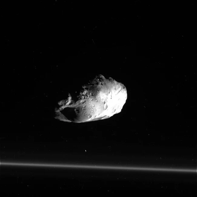 Another satellite of Saturn, Prometheus, as it turns out, is also very similar to food. It is heavily cratered and oblong in shape, making it look like a space potato. Moreover, it is also reddish-brown. What kind is this?
