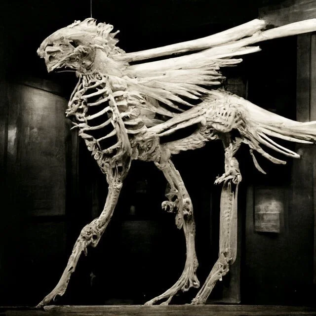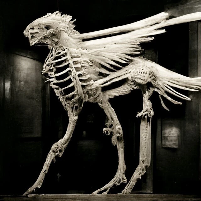 The skeleton of a griffin in the museum was generated by artificial intelligence