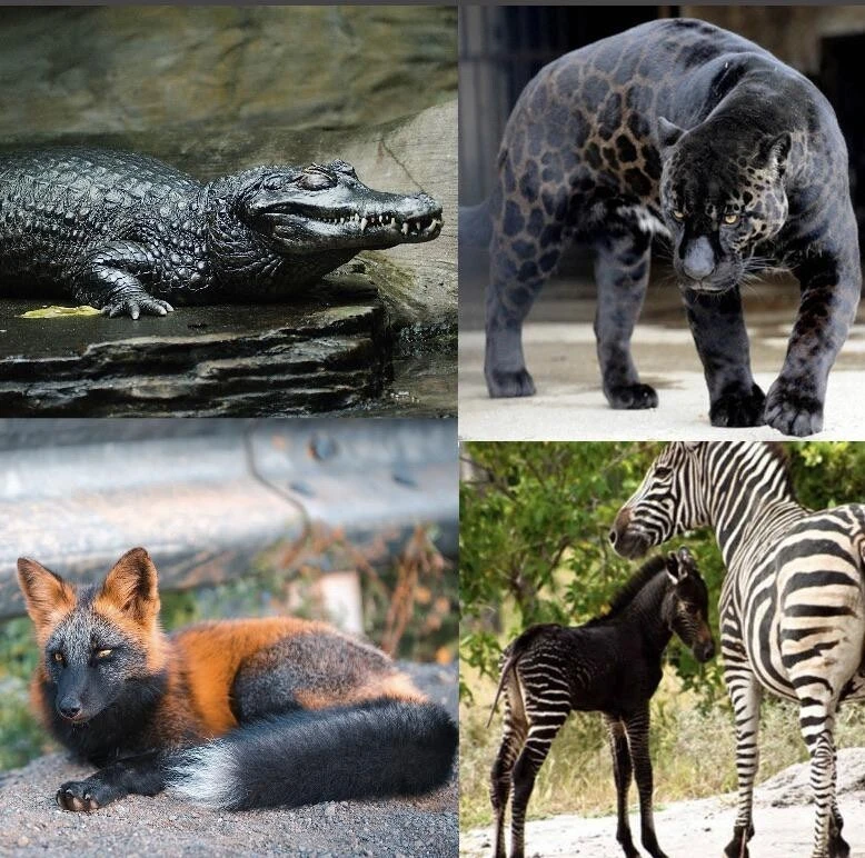 Melanistic animals are the opposite of albinos.