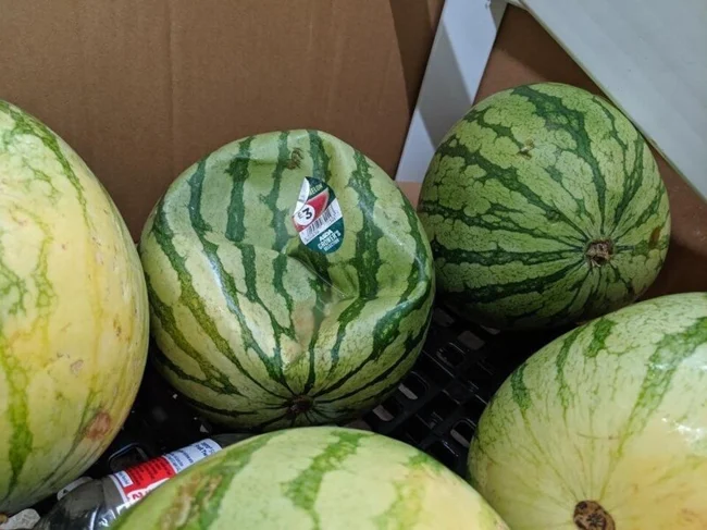 This watermelon looks like a deflated football