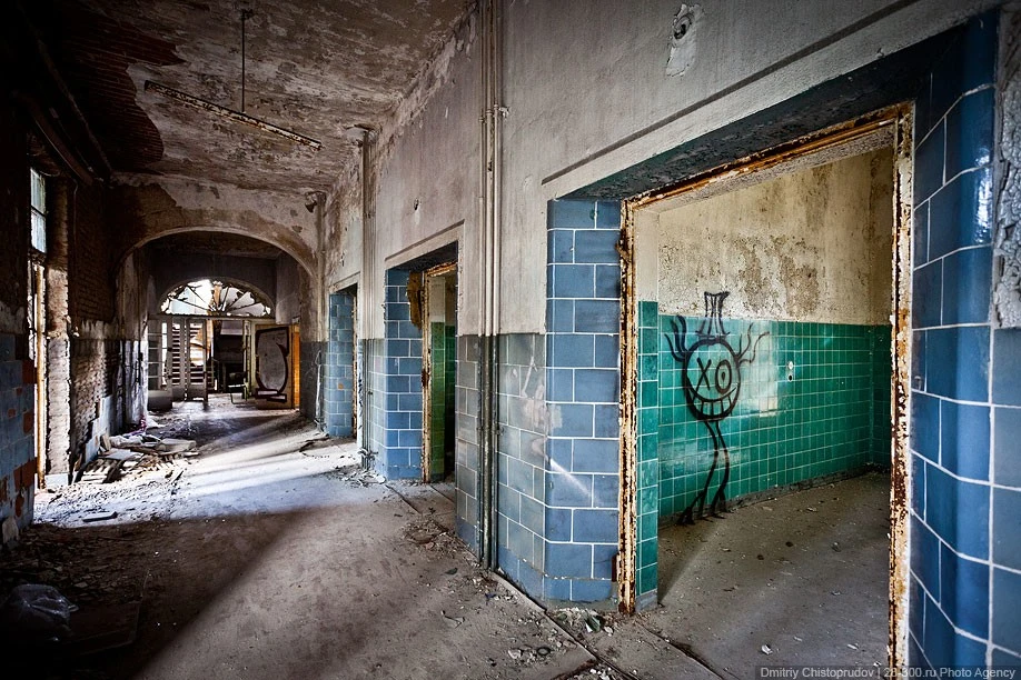 Photos by Dmitry Chistoprudov The mood of the abandoned hospital begins right from the station platform: