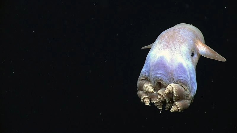 This octopus got its name because of its large “ears.” It lives at depths of up to 3960 meters. The octopus's diet consists of snails, worms and other small creatures that live at the same depth. Their limbs are quite short and webbed, which helps them swim faster than the average octopus.