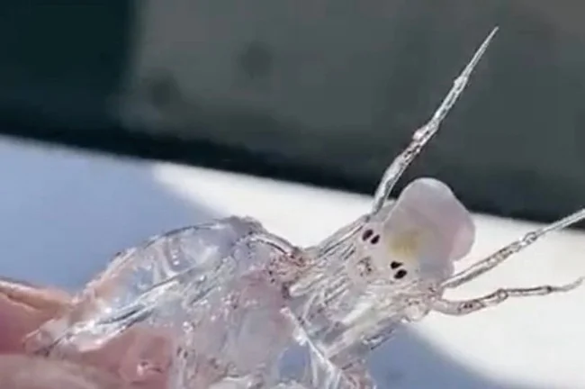 The small creature that the fishermen discovered was completely transparent. No one could truly recognize the species until an older, similar video surfaced of a man holding a creature called a cystisoma. They live in low light conditions, at a depth of about 600-1000 meters in the ocean.