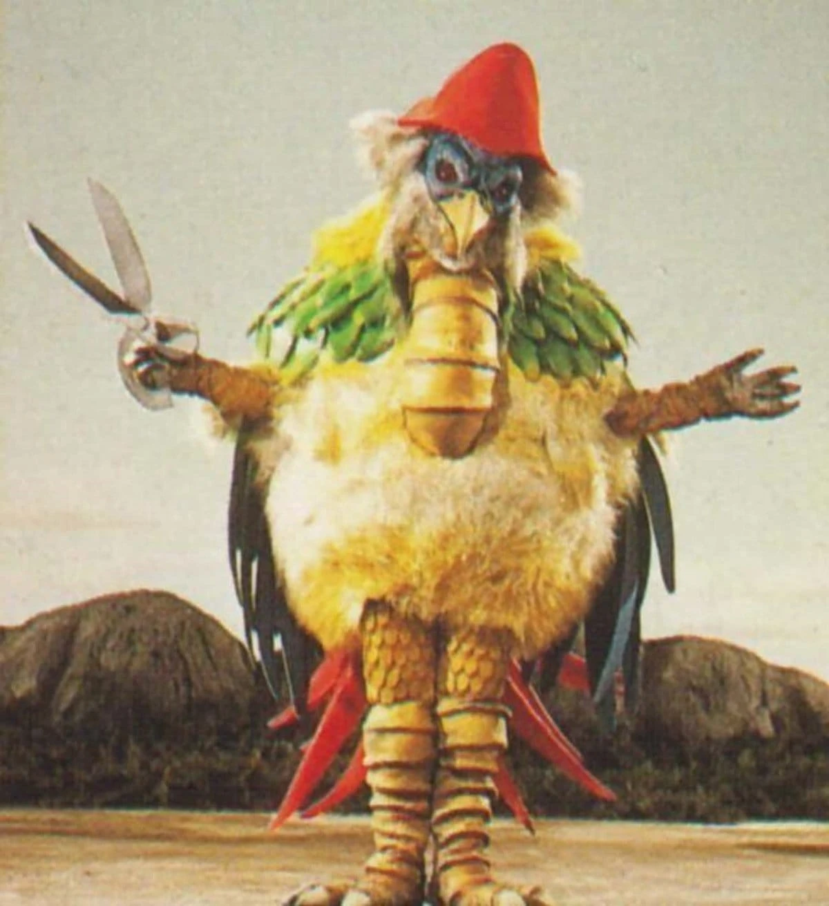 This creepy-looking chicken could fly and wield sharp scissors. In his enlarged state, Chenki had the ability to open spatial portals and move to any place.