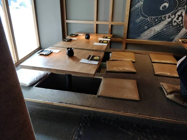 This sushi restaurant has tables that mimic traditional Japanese seating.