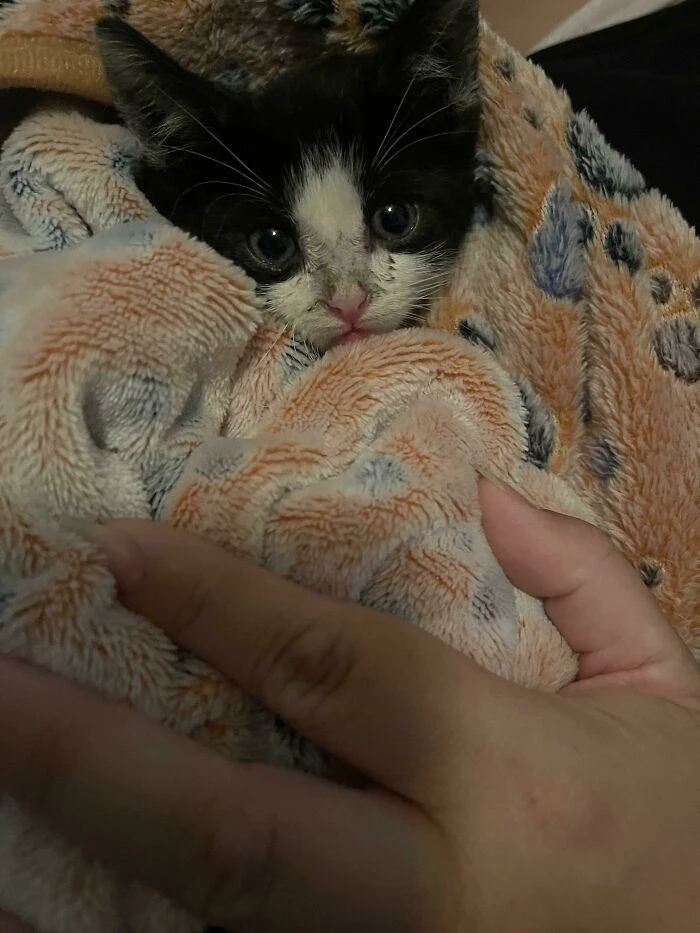19. “This little guy was literally thrown into the street, and we picked him up.”
