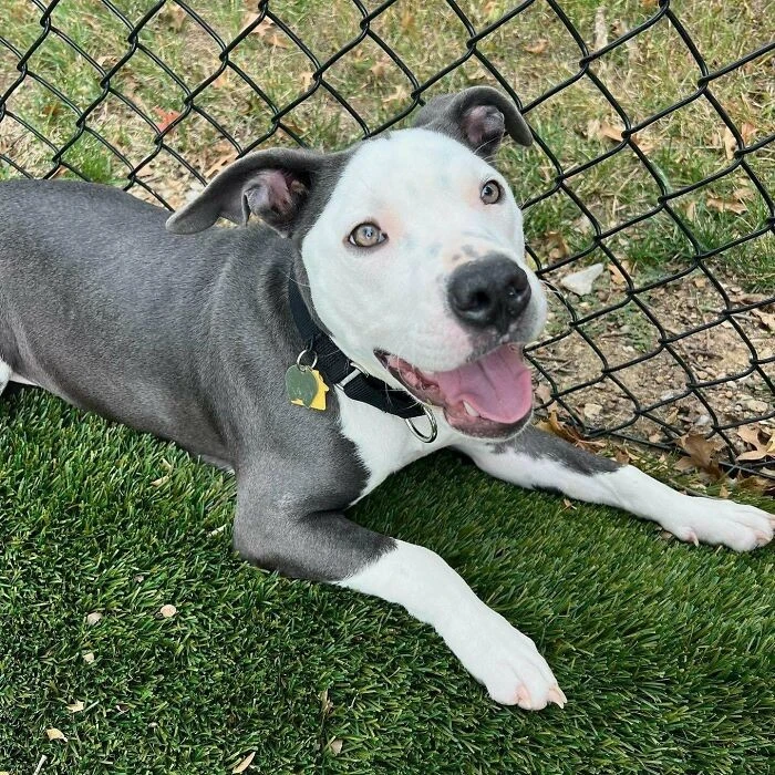 7. "Our new family member is a 15-year-old pit bull."