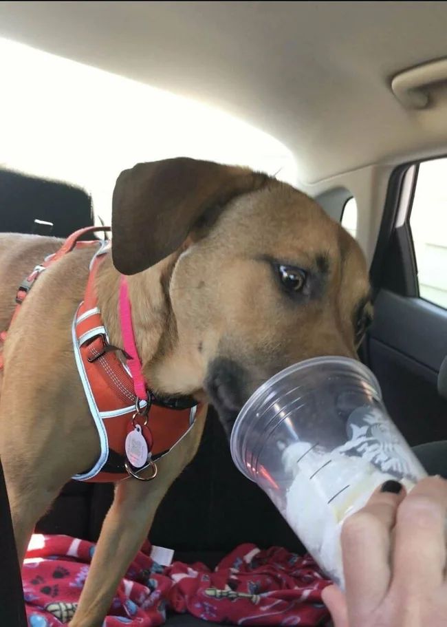 9. “She was on the shelter’s euthanasia list because no one wanted to take her. We rescued her just in time, and now she’s having coffee with us.”