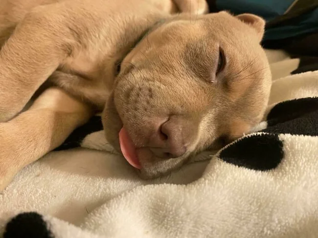 22. “Our new shelter puppy loves to sleep.”
