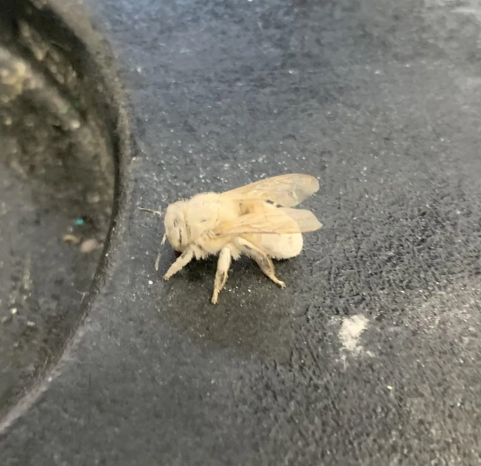 White bee from Texas. There's nothing wrong with her, she just suffers from albinism.