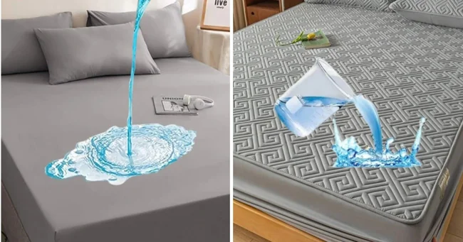 The glass of liquid and the mattress had scheduling conflicts, so the photographer had to shoot them separately and then compose the images.