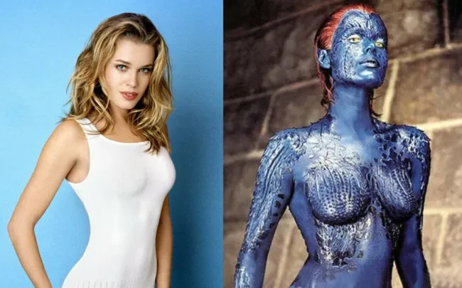 The role of Mystique in the first three films was played by fashion model Rebecca Romijn, after which her career as an actress took off. She also made a brief appearance in X-Men: First Class, playing the woman that Jennifer Lawrence's new Mystique turns into.