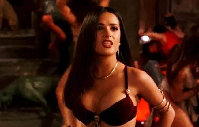 One of the most striking moments in the film “From Dusk Till Dawn” can confidently be called the appearance of the charming Salma Hayek in the role of Santanico Pandemonium with a python around her neck. Her chic dance to the cult composition of the group "Tito and Tarantuls" left no one indifferent. You could look at Salma, her gorgeous body and her flexible movements endlessly. It's a shame it was deleted so quickly.