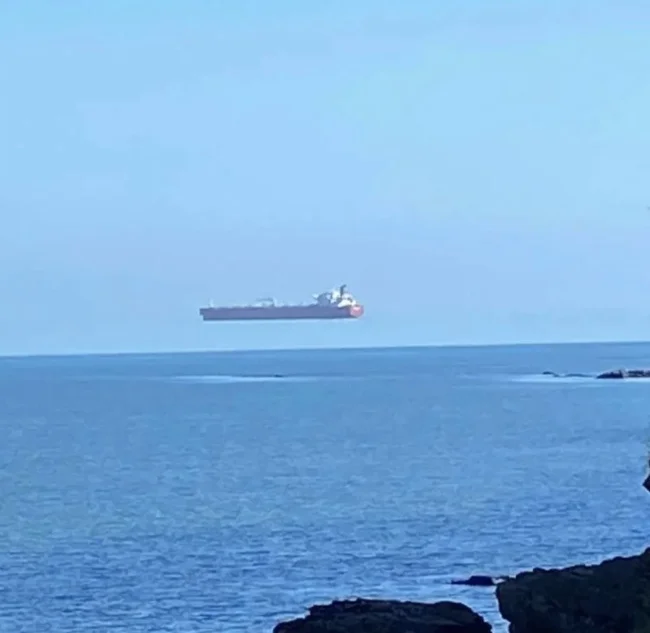 15. No, this ship does not float in the air. It's the illusion of a false horizon
