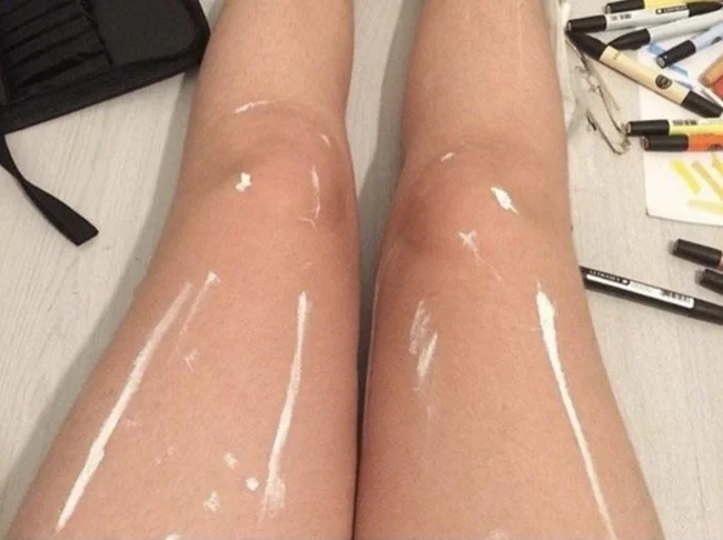 1. These legs look like they've been doused with oil, but they're just white paint.