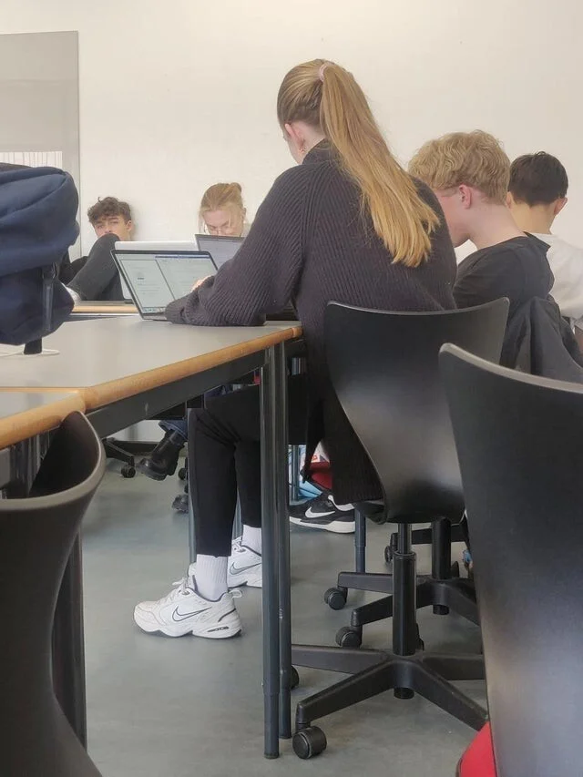 When the dark floor reflects on a shiny swimsuit ![]()