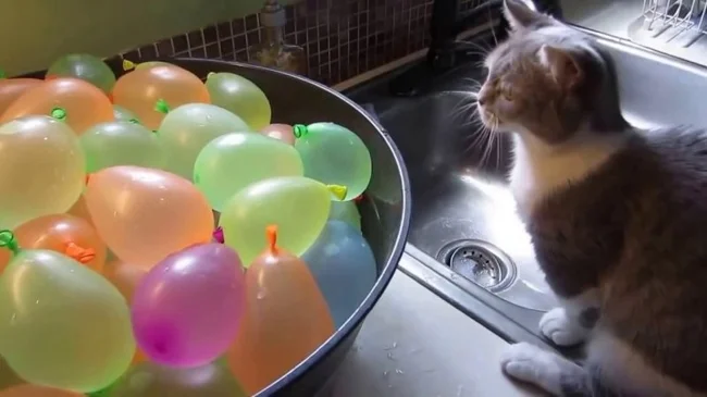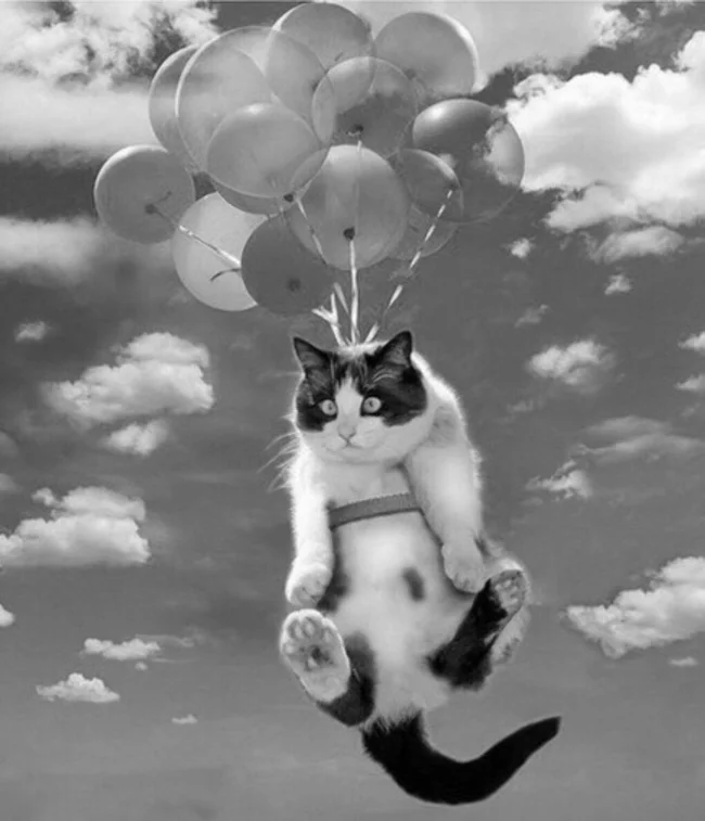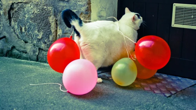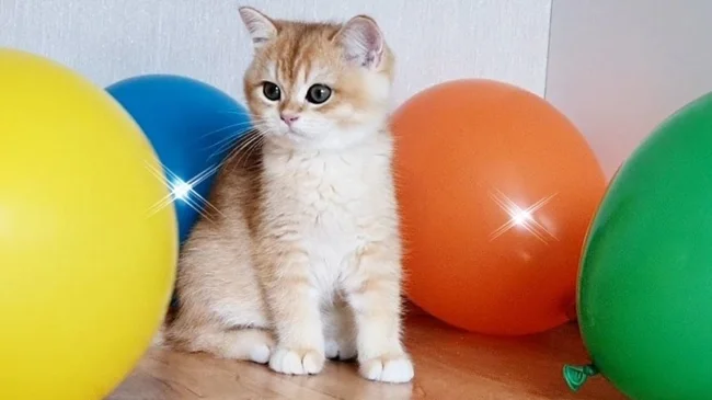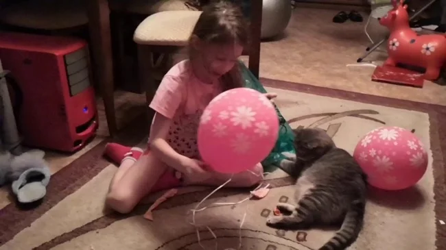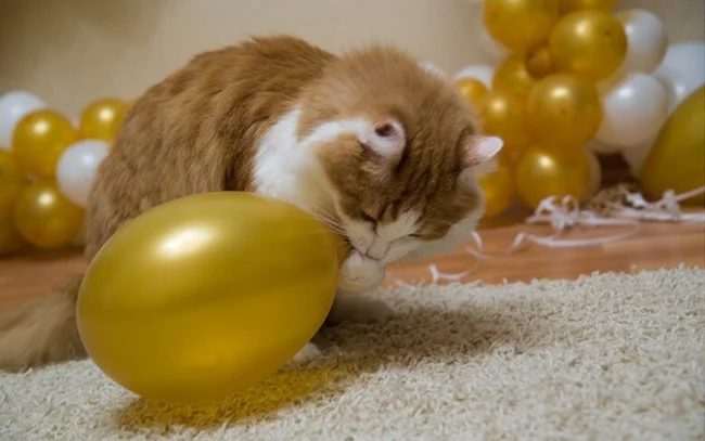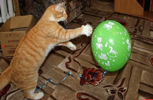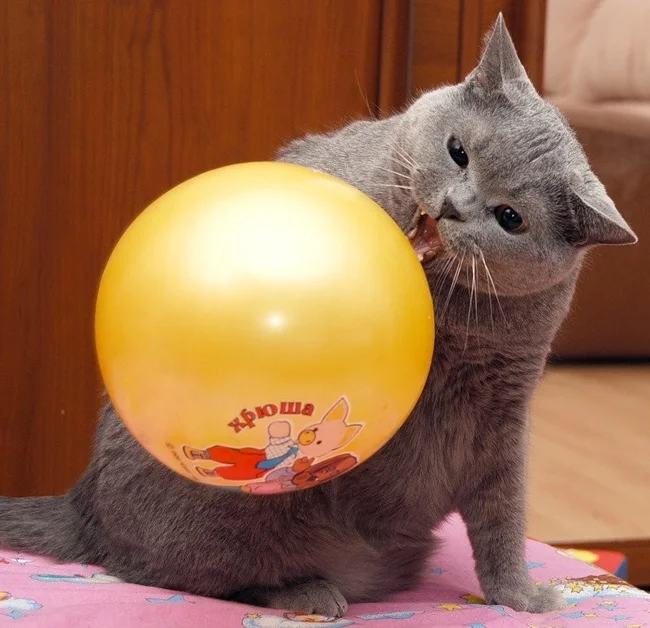 But this is for us, the people. And for cats, these colorful, rustling and flimsy objects are very, very strange. Even frightening, because the result of a delicate touch of this thing with a soft paw is a deafening smack and multi-colored scraps that hang like rags and settle in the most unexpected places. But the photos remain funny, which you can admire until the next balloon invasion.