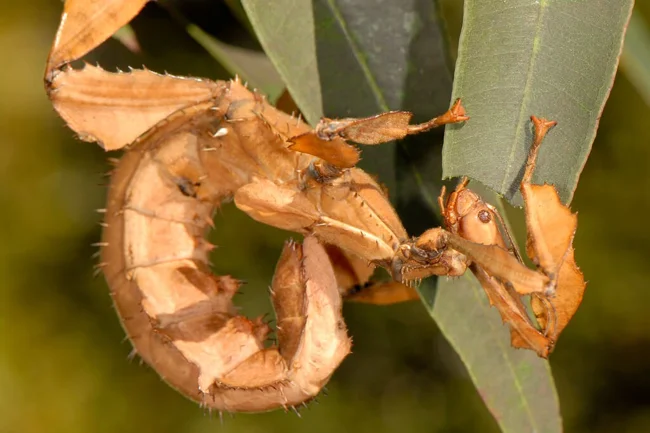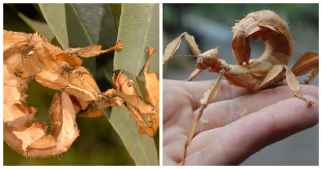 Large, plump and neatly decorated with thorns, the length of the stick insect carcass can vary from 10 to 20 centimeters. And the resemblance to a leaf of this mysterious creature is also not only visual. The Australian stick insect skillfully imitates a dry leaf maneuvering in the wind. Looking at the realistic body movements, there won’t even be any doubts – it is a leaf.