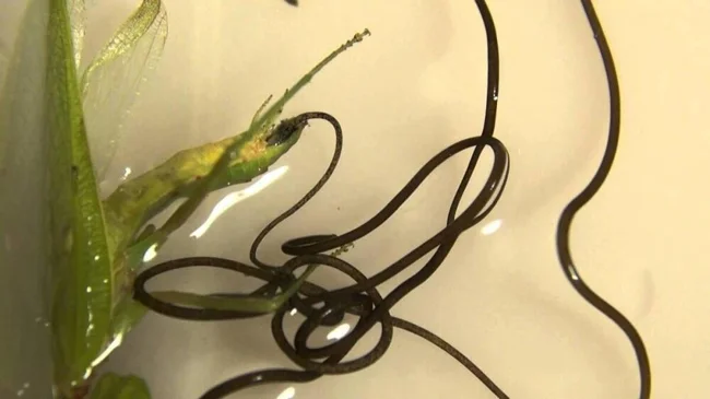 The hairworm is found almost everywhere in freshwater bodies. One individual is capable of laying an insane number of eggs, up to 10 million. Larvae develop within them within 2-4 weeks, which then look for a captive carrier. Slowly moving along the bottom, the larvae find a host. A variety of insects act in this capacity: crickets, grasshoppers, ground beetles, beetles, dragonflies. And here the real game begins: for several weeks the larvae parasitize inside, feeding at the expense of the donor and growing into an adult. And then they force the donor to literally commit suicide! Drown yourself by manipulating the behavior of an insect. The worm senses the proximity of water and begins to actively move towards freedom, completing what it started. Everything takes from a few seconds to a couple of minutes.