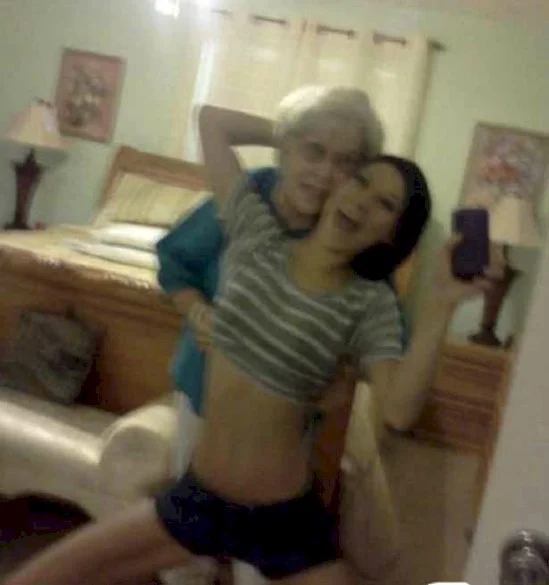 16. Modest photo session of a granny with her granddaughter