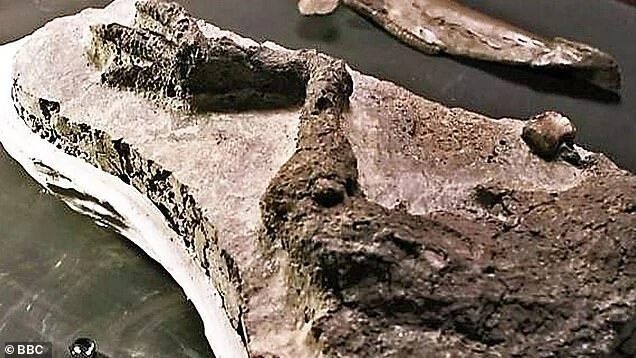 The leg of a thecelosaurus - a small herbivore - was discovered next to a fragment of the space rock that killed it. Experts believe the skinned limb was most likely torn off when the Chicxulub asteroid hit and then buried in the falling debris on the day of impact.