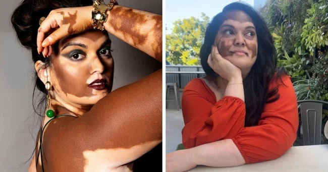 Модель плюс сайз, що страждає на вітіліго. Це захворювання характеризується поступовою втратою природного пігменту шкіри рахунок руйнування меланіну.