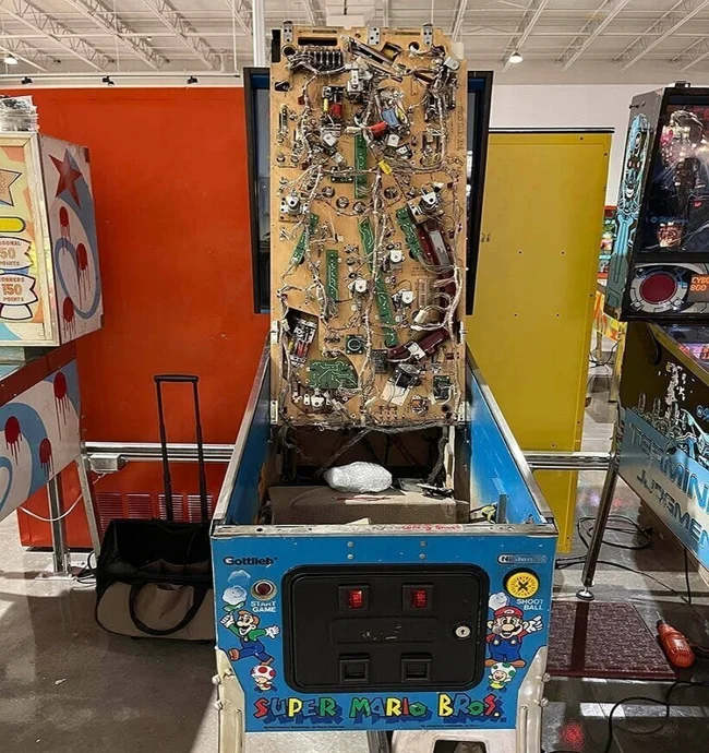 Вражає своєю кількістю схем та проводків. Ось так виглядає зсередини гра у пінбол.