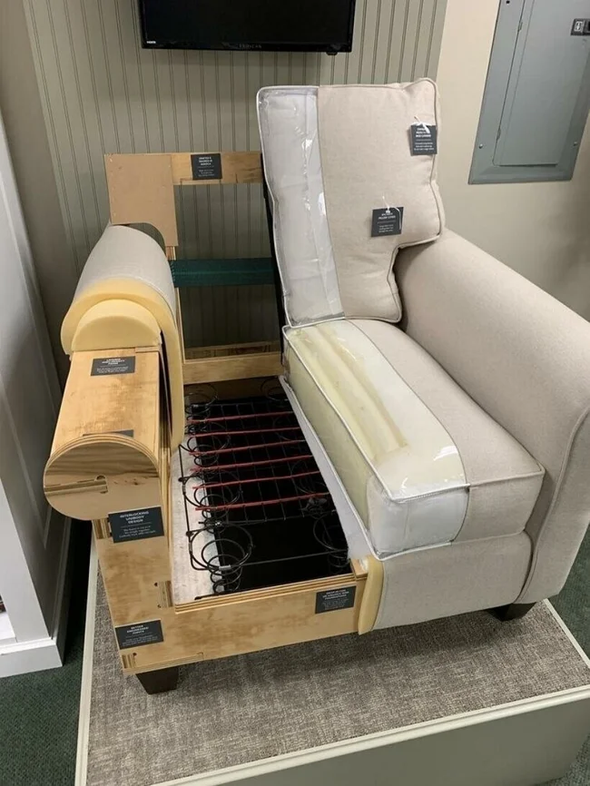 В одному з меблевих магазинів можна було помилуватися нутрощами крісла.
