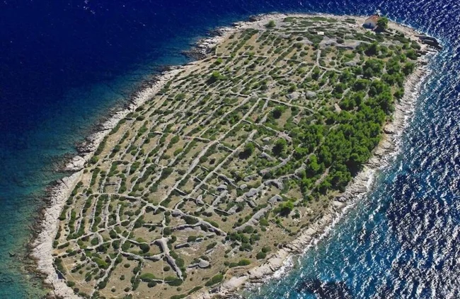 З висоти цей острів нагадує відбиток пальця через численні кам'яні стіни. Протягом сотень років народ із сусіднього острова Капріє використовували Бальєнац для висаджування культур, таких як виноград, інжир, оливки. Щоб розмежувати види рослин та вберегти їх від вітру, хорвати будували кам'яні стіни.