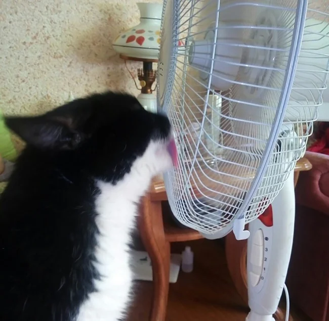«Улюблена розвага мого кота в сезон включених вентиляторів»