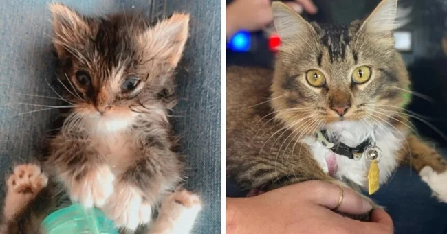 Перша фотографія зроблена за місяць до того, як ми її забрали до себе, друга — через два роки.