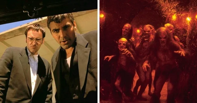 Почавшись як цілком тарантинівський фільм тих років у стилі «Скажених псів», «Справжнього кохання» чи «Природжених убивць», картина Роберта Родрігеса робить перекид, і глядач разом із головними героями раптом опиняються в містичному барі, наповненому вампірами.