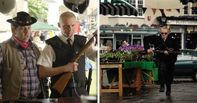 Характерна британська комедія із Саймоном Пеггом та Ніком Фростом раптом перетворюється на високобюджетний бойовик із крутими перестрілками та голлівудськими вибухами. Крім того, у цьому фільмі є досить лякаючий для комедії сюжетний поворот.