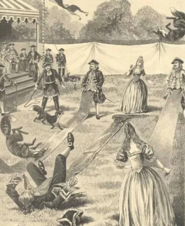 Він називався "Кидання лисиць". Його докладний опис є в німецькій книзі про полювання, що датується 1720 роком. Її учасниками були дворяни та інші аристократи.