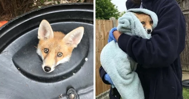 Лисеня застрягло в кришці з-під сміттєвого бака, але все закінчилося добре