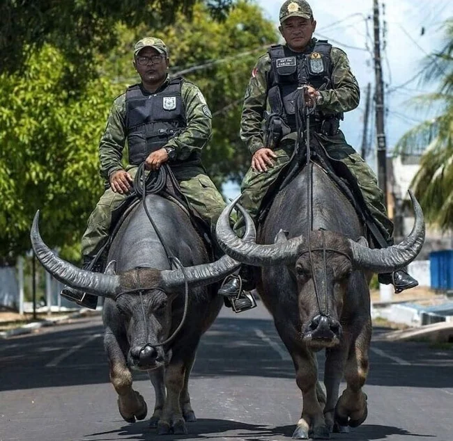 Бразильські поліцейські патрулюють вулиці на буйволах