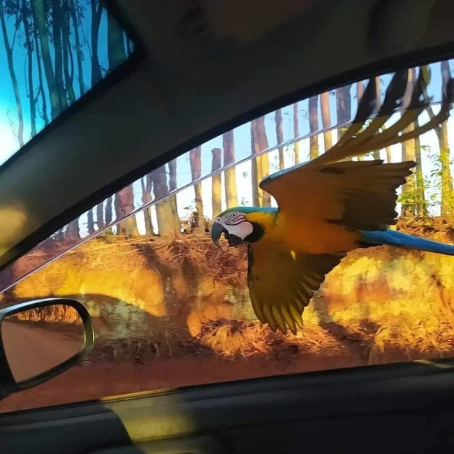 Колега подорожував Бразилією. Його вирішив привітати місцевий ара