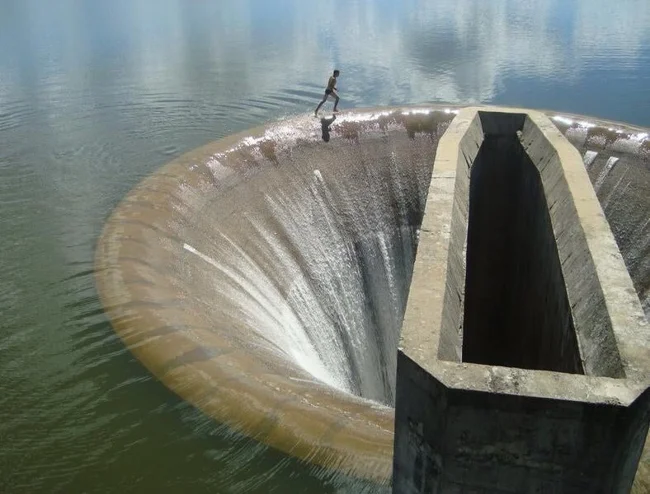 На фото дренажна гребля, яка знаходиться в Агуас-Вермельяс, Бразилія. Діти перестрибують через огорожу, щоб скупатися.
