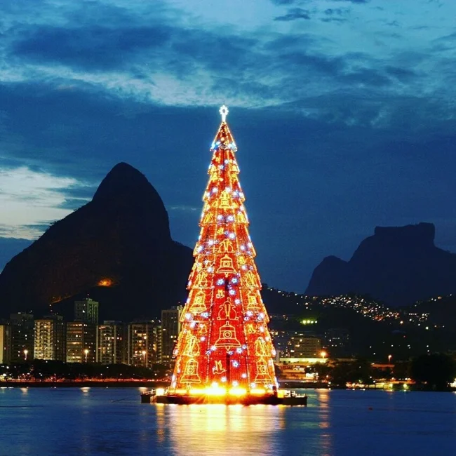 Різдво в Бразилії святкування прямо лежачи на пляжі. Ялинку тут встановлюють на воді