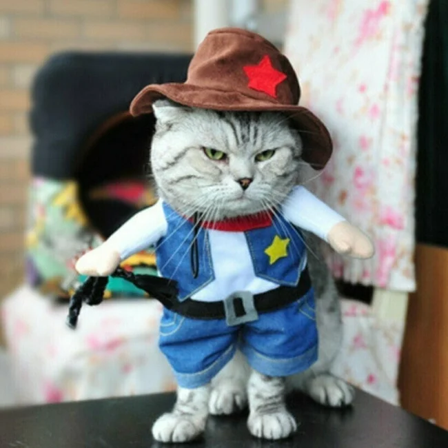 Всі вже звикли, що собаки хизуються вулицями в комбінезонах та светрах, але вбрані коти поки що здатні дивувати, особливо незвичайними образами.