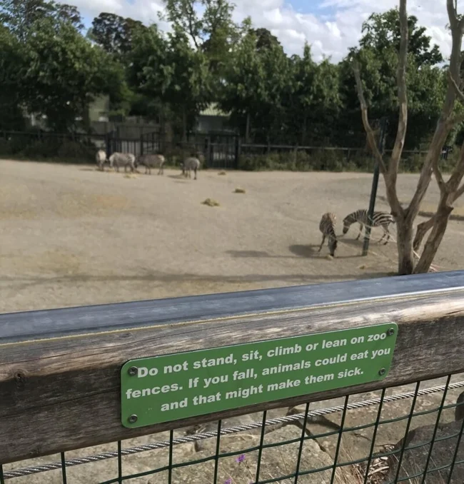 Не стійте, не сідайте та не спирайтеся на огородження зоопарку. Якщо ви впадете, тварини можуть з'їсти вас, і це може спричинити нудоту.