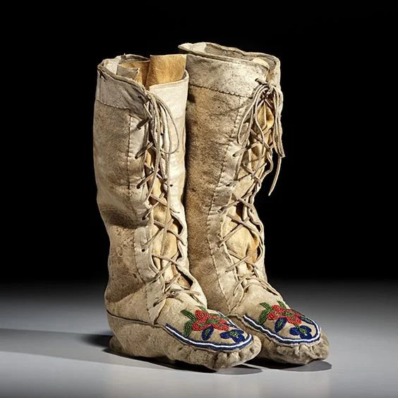 Корінні жителі Північної Америки віддавали перевагу теплішому взуття - мокасинам. Їх виготовлення почалося близько 2,5 тисяч років тому зі шкір лосів, бізонів, тюленів, оленів та ведмедів. Зшивали їх або тонкими смужками тих самих шкур, або їх жилами.