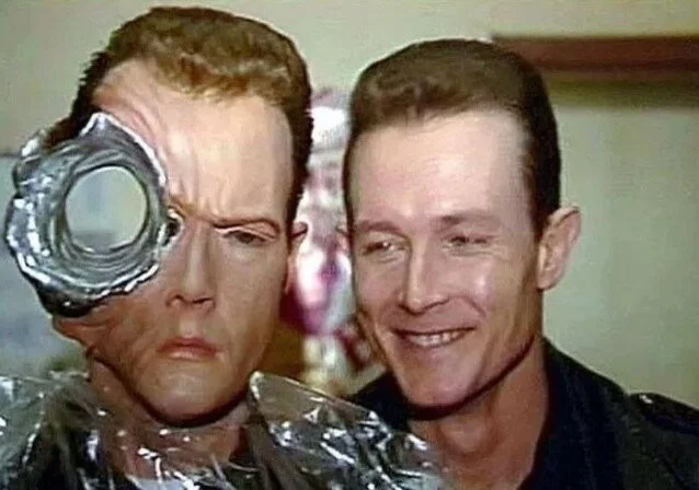 Природно, свій штучний двійник був і Арнольда Шварценеггера, який виконав головну роль, а саме самого Термінатора Т-800.