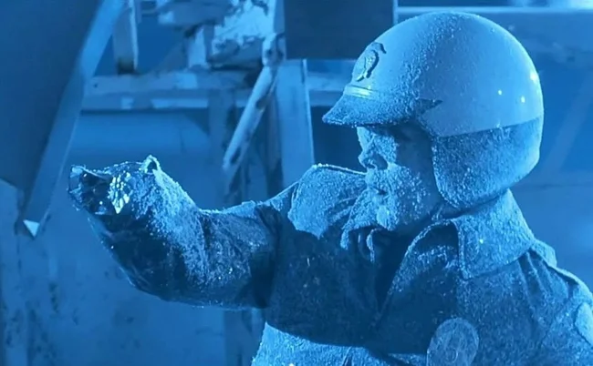 Як уже й було зазначено, Джеймс Кемерон віддавав перевагу більше натуральним ефектам, ніж комп'ютерним, тому навіть у сцені, де заморожений Т-1000 розвалювався на шматочки, був залучений інвалід без кінцівок зі спеціальними протезами.