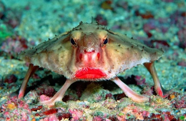 4. Нетопір Дарвіна - променепера риба, губи якої ніби нафарбовані червоною помадою. Це задумано природою для залучення самок