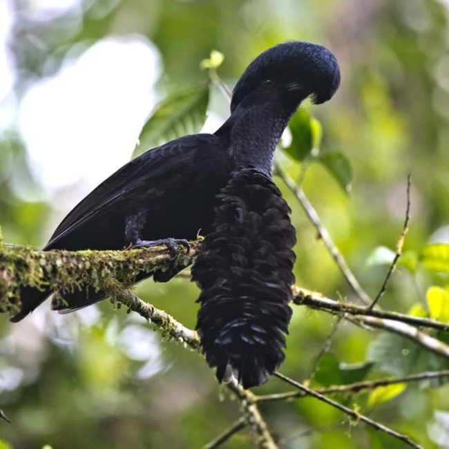 14. Еквадорський парасольковий птах мешкає в Колумбії та Еквадорі. Їхня незвичайна особливість - у самців на голові є нависаючий гребінь, що складається з пір'я